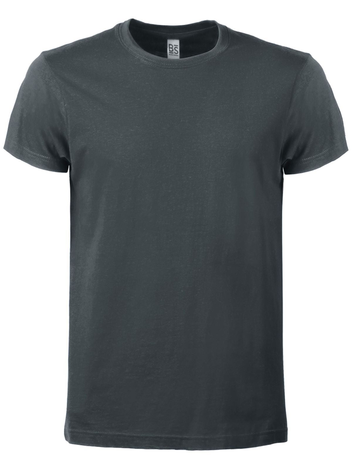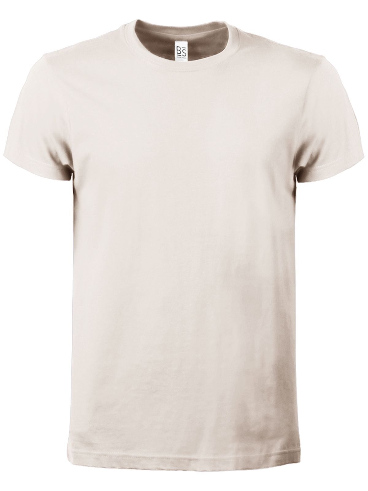 100% cotone . T-shirt manica corta, tessuto ring-spun single jersey, collo basso con cucitura a doppio ago, parasudore, struttura con busto tubolare.